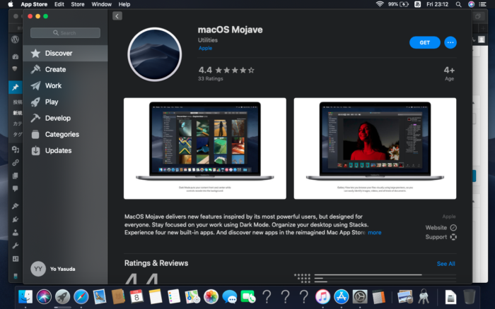なのだけど、今回メルカリで状態の良さそうなMBP mid 2012を見つけて購入した。メモリは4GB。OSはMojaveがインストールされてた。まぁ最近は軽いMBPとかMBがいっぱい出てるんだけど、個人的にはパソコンはDIYできないとどうにも愛着がわかない。そういう意味で自分にはmid 2012がとても魅力的なのだ。