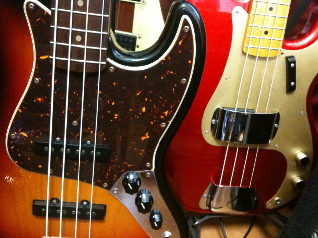 最近愛用の赤いプレベに加え、ネックの調子が悪かったVanZandtのジャズベースも無事調整が終わり復活。